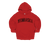 Distressed red lettering with smoky black texture